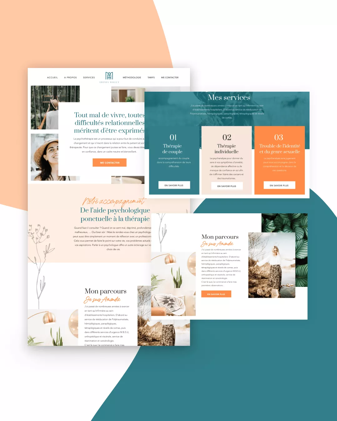 L’identité visuelle et le site web revêtent une importance capitale pour Amanda, car ils servent de premiers points de contact avec ceux qui cherchent son expertise. Une identité visuelle réfléchie, accompagnée d’une palette de couleurs et de visuels évocateurs, communiquera visuellement la bienveillance, la confidentialité et l’expertise professionnelle qui sont au cœur de son approche thérapeutique.