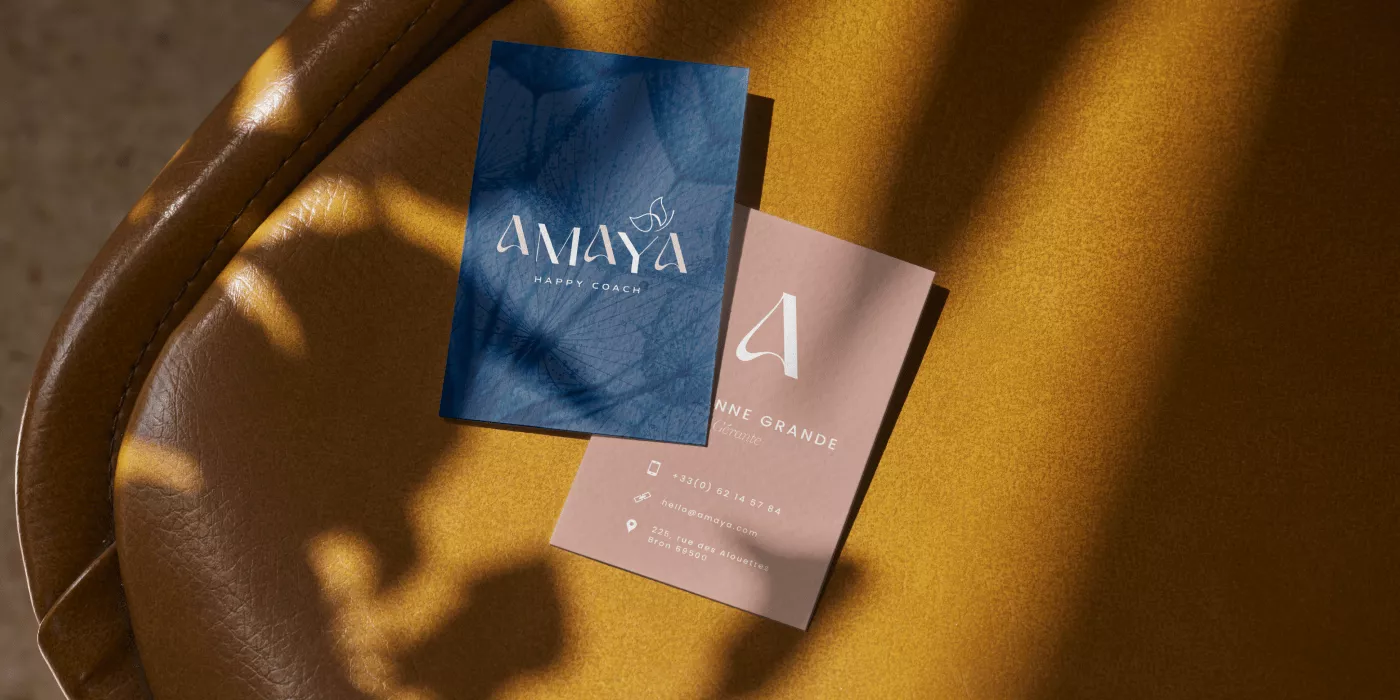 La typographie choisie est audacieuse et unique, tout comme Amaya. Le papillon, symbole de transformation et d’épanouissement, est au cœur de cette identité visuelle, rappelant les valeurs essentielles du cheminement personnel. La palette de couleurs choisie transmet des émotions puissantes. Les teintes sélectionnées évoquent la fiabilité, la passion, la douceur et l’énergie. Chaque couleur a été soigneusement choisie pour créer une atmosphère chaleureuse et inspirante. Elle évoque la chaleur humaine et l’enthousiasme que met Amaya dans son travail. Cette identité visuelle est plus qu’un simple design : elle est le reflet des aspirations d’Amaya.