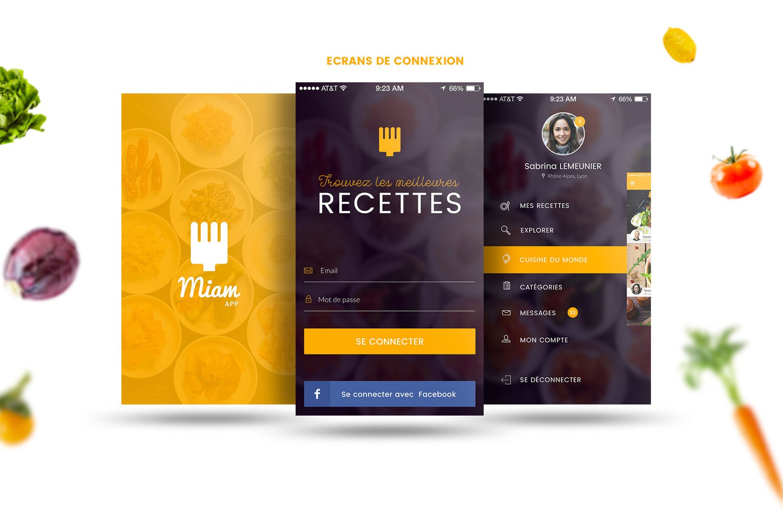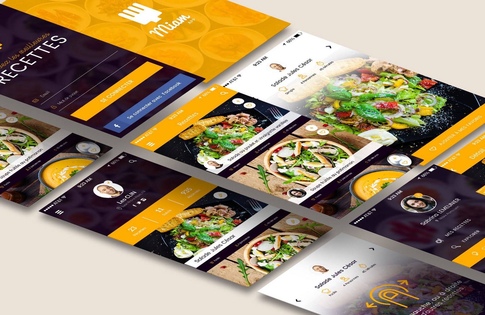 Miam App est une application fictive de recettes de cuisine ou j’ai repensé l’expérience de l’application Youmiam. L’application permet de publier ses propres recettes et de consulter celles des autres en se réservant le droit de sauvegarder les meilleures dans ses favoris.